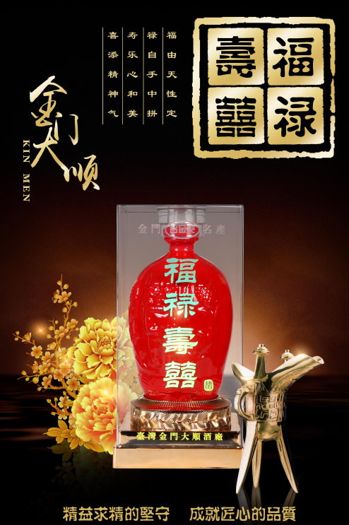 金門大順酒廠股份有限公司 為臺(tái)灣金門第一家合法民營(yíng)酒類制造業(yè)者,多年來以生產(chǎn)好酒為宗旨,秉持傳統(tǒng)古法釀造技術(shù),廣受消費(fèi)者好評(píng)。